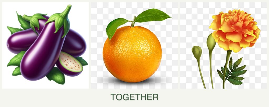 Planting eggplant, oranges, and marigolds together can offer several benefits: