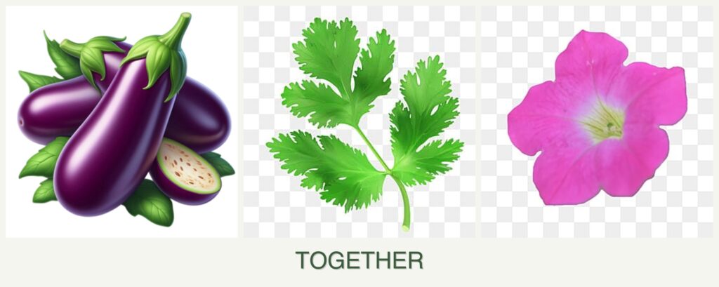 Pest Repellent Properties: Parsley can attract beneficial insects such as hoverflies, which help control aphid populations, a common pest for eggplants. Petunias can deter beetles and other pests with their fragrance.