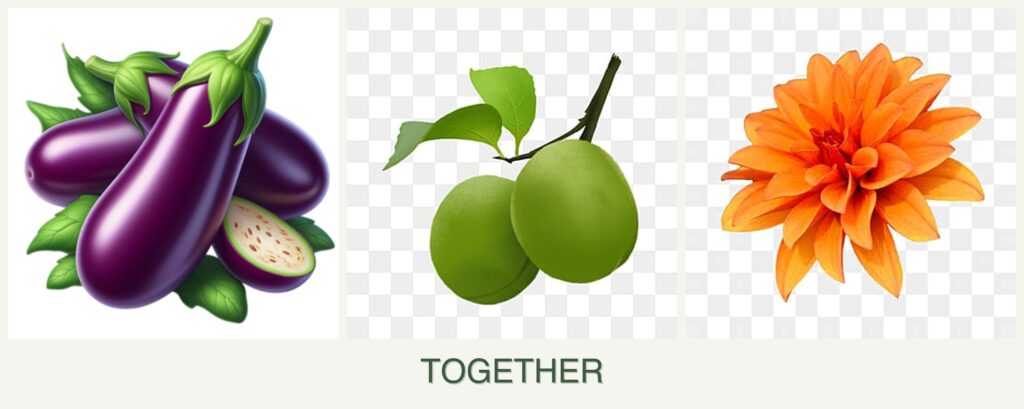 - Eggplant and Dahlias: These two can be planted together as they have similar sunlight and water requirements. Dahlias can help attract pollinators, benefiting the eggplants.
