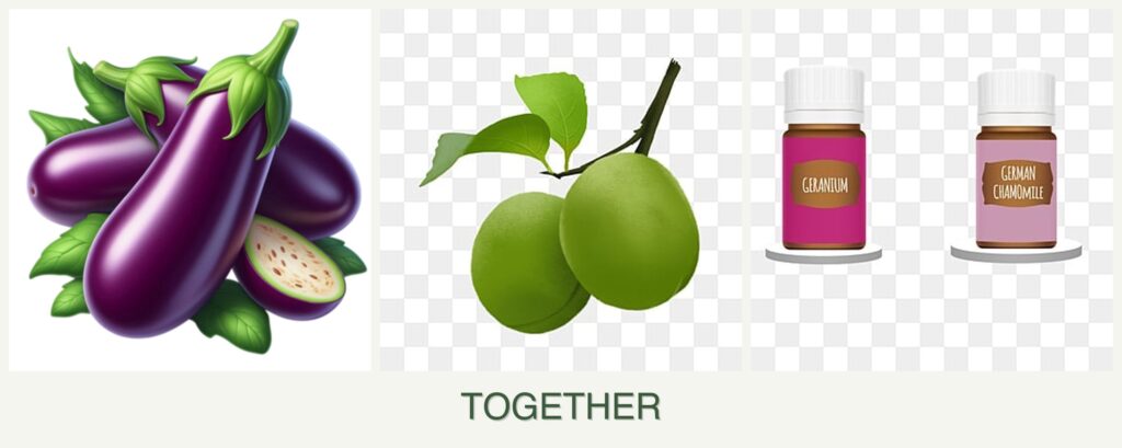 Growth Requirements: Eggplants thrive in warm conditions with full sun, while plums, as trees, require significant space and can shade out other plants. Geraniums, often used as ornamental plants, can tolerate a range of conditions but do not necessarily benefit from being near eggplants or plums.