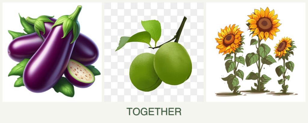 Planting eggplants, plums, and sunflowers together can offer several advantages: