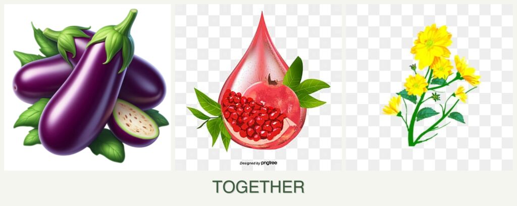Planting eggplants, pomegranates, and calendula together offers several benefits: