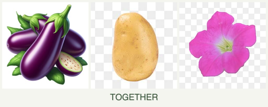 - Growth Requirements: Eggplants and potatoes need full sun and well-drained soil. Petunias also thrive in full sun but have different water and nutrient needs.