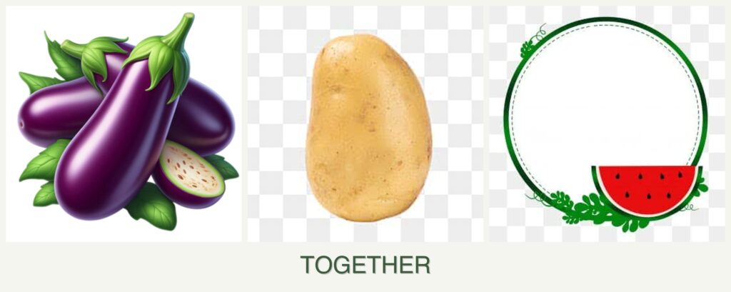 - Competition for Resources: Eggplants and potatoes compete for nutrients, while watermelons require more space and water.
