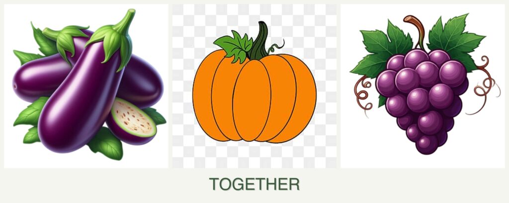 - Growth Requirements: Eggplants and pumpkins both thrive in full sun and well-drained soil, but pumpkins require more space due to their sprawling vines. Grapes also prefer full sun but need trellising for support.