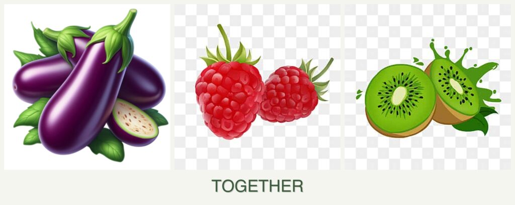 - Growth Requirements: Eggplants need warm temperatures, while raspberries and kiwis have different climate preferences.