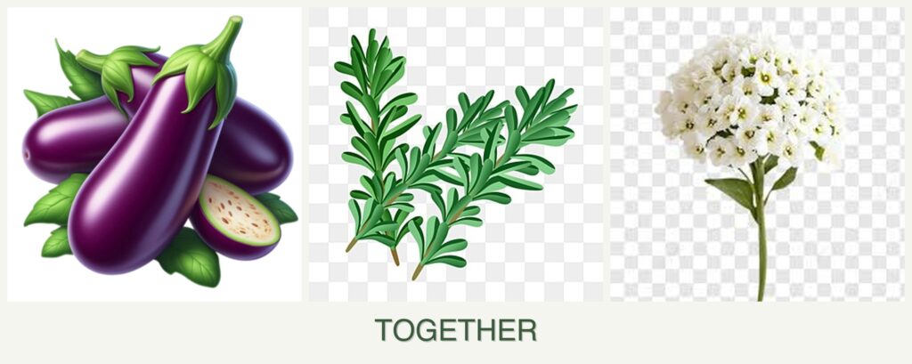 - Soil Health Benefits: Alyssum can help suppress weeds and improve soil structure, benefiting both eggplant and rosemary.
