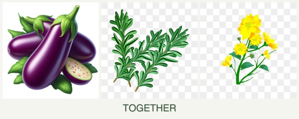 Planting eggplant, rosemary, and calendula together offers several benefits: