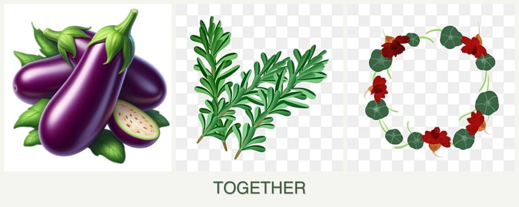 - Additional Companions: Basil and thyme also pair well with eggplants and rosemary.