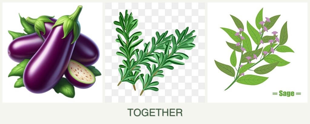 - Pollinator Attraction: Rosemary and sage flowers attract pollinators, which can aid in the fruiting of eggplants.