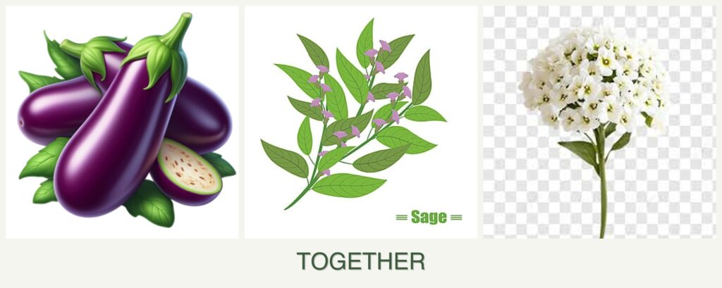Planting eggplant, sage, and alyssum together offers several benefits:
