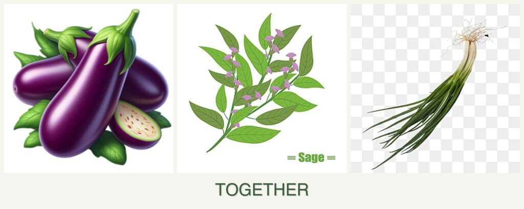 - Pest Repellent Properties: Sage and chives repel pests like aphids and beetles, protecting eggplants.