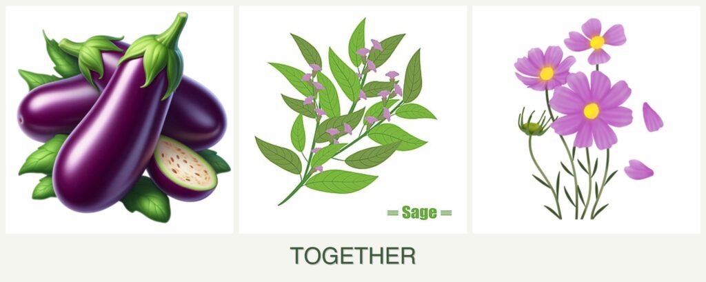 Planting eggplant, sage, and cosmos together offers several advantages: