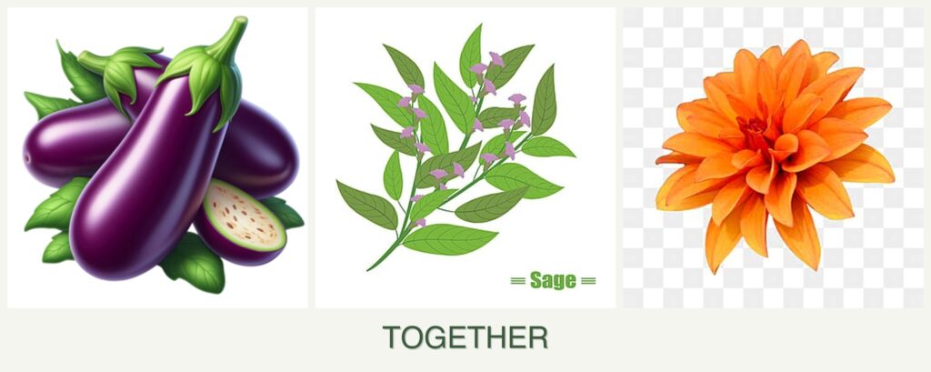 Planting eggplant, sage, and dahlias together can offer several advantages: