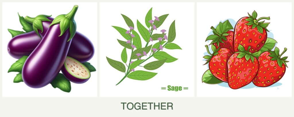 Pest Control: Sage is an excellent companion for eggplant due to its pest-repellent properties, particularly against flea beetles, which often afflict eggplants. Strawberries donโt directly benefit from sage in terms of pest control but do not hinder its effects.