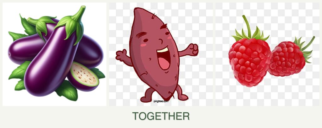 Can you plant eggplant, sweet potatoes and raspberries together?
