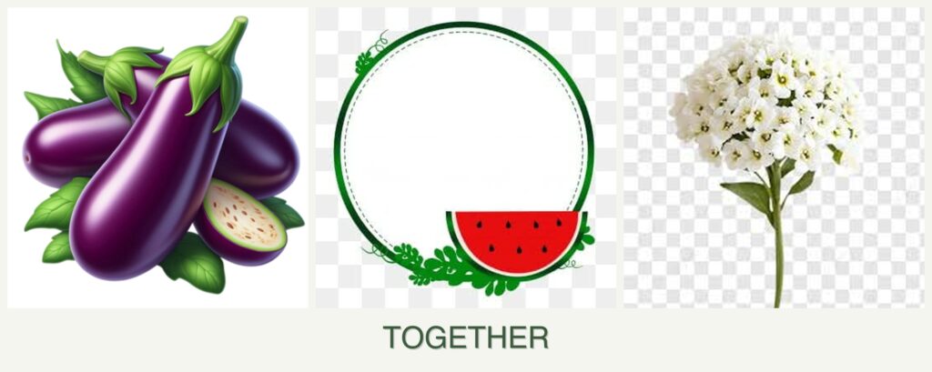 - Watering Needs: Watermelons require more water than eggplants and alyssum, necessitating careful irrigation management.