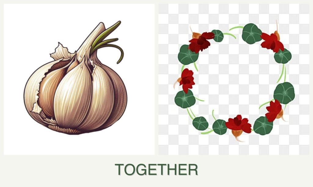 - Pest Control: Garlic’s natural pest-repelling properties help protect nasturtiums from aphids and other insects, while nasturtiums can attract predatory insects that keep pests in check.