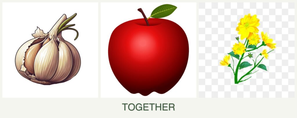- Pest Control: Garlic’s strong scent deters pests, benefiting apples. Calendula attracts beneficial insects, offering natural pest control.