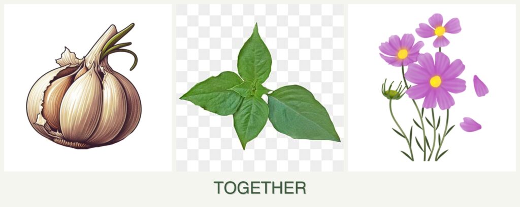 - Pest Repellent Properties: Garlic deters aphids and other pests, protecting basil and cosmos.