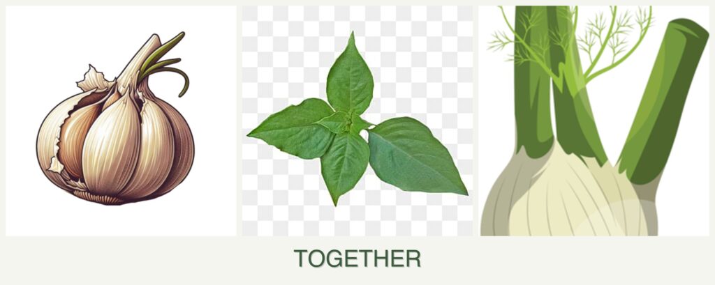 Growth Requirements: Basil and garlic share similar needs, thriving in well-drained soil and full sun. Fennel, however, can disrupt the growth of these plants due to its allelopathic properties.