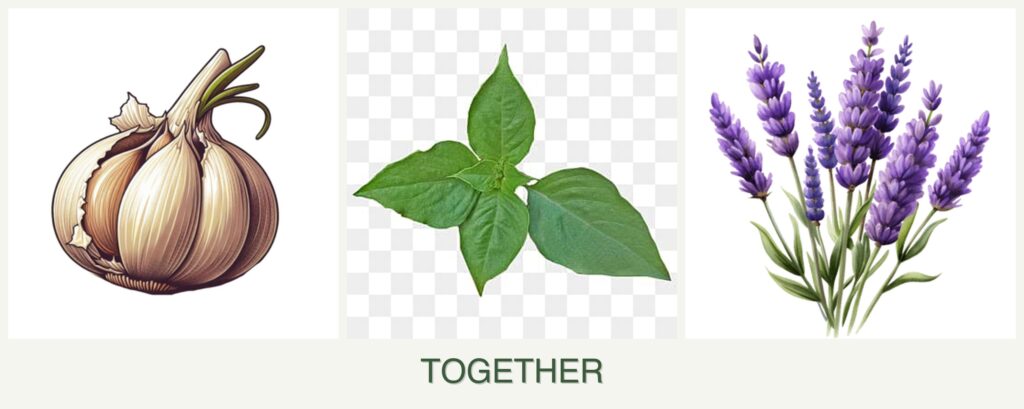 Improved Flavor and Growth: Basil is known to enhance the flavor of nearby plants, including garlic. Lavender’s presence can attract pollinators, boosting basil’s growth.