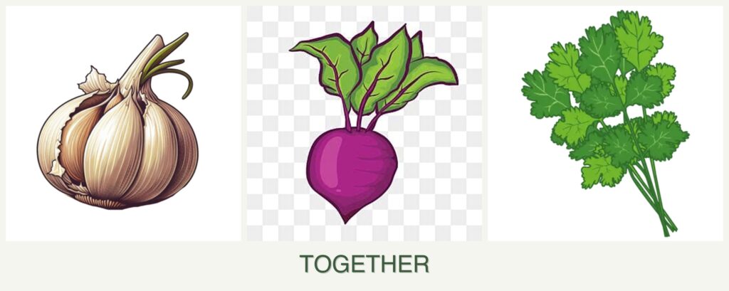 Planting garlic, beets, and cilantro together offers several benefits: