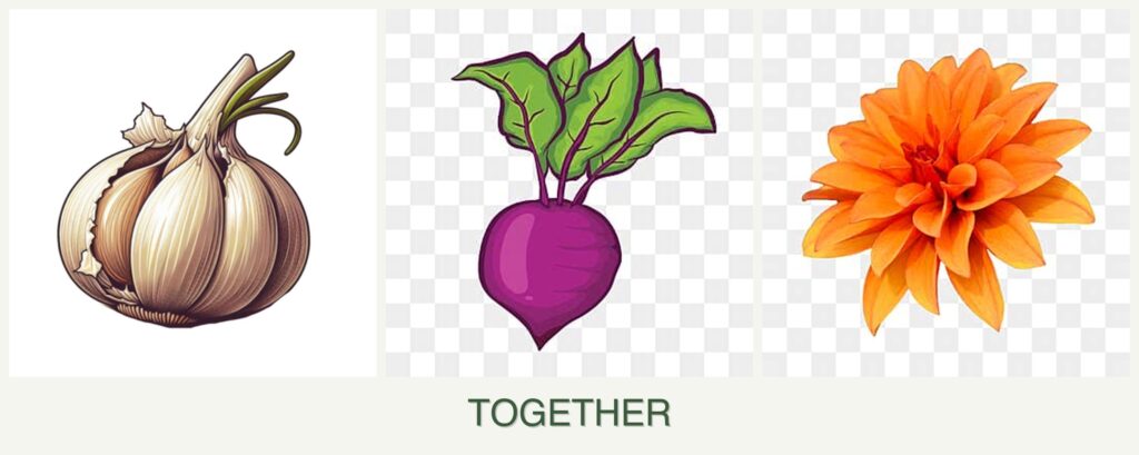 - Pest Control: Garlic acts as a natural pest deterrent, which can help protect beets and dahlias from common garden pests.
