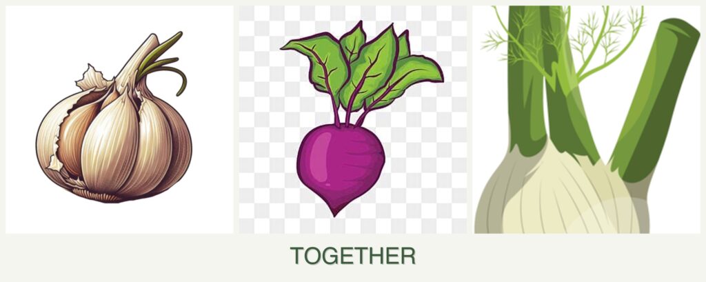 - Nutrient Needs: All three plants require rich, fertile soil, but fennel’s aggressive growth can deplete nutrients, affecting the health of garlic and beets.