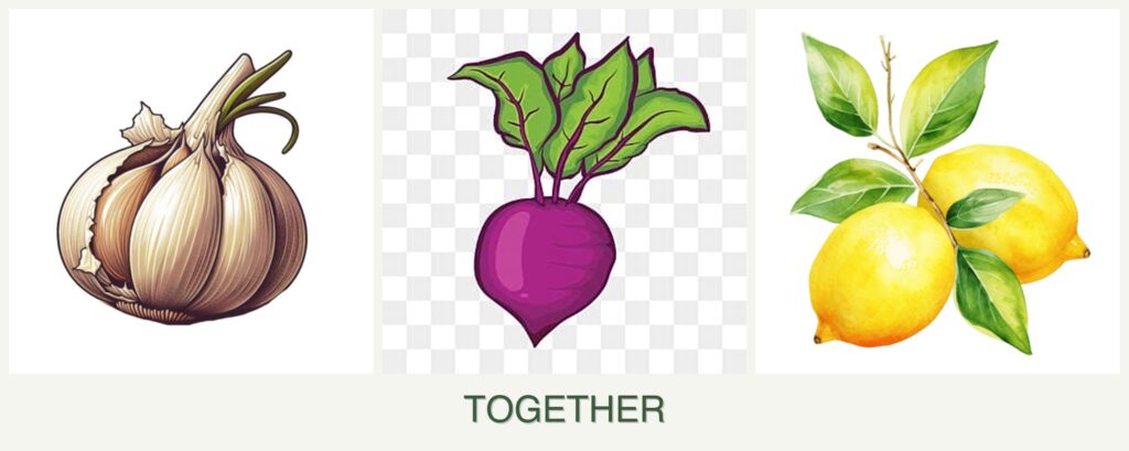 - Timing: Plant garlic in the fall and beets in early spring. Lemons can be planted in spring or fall in warm climates.