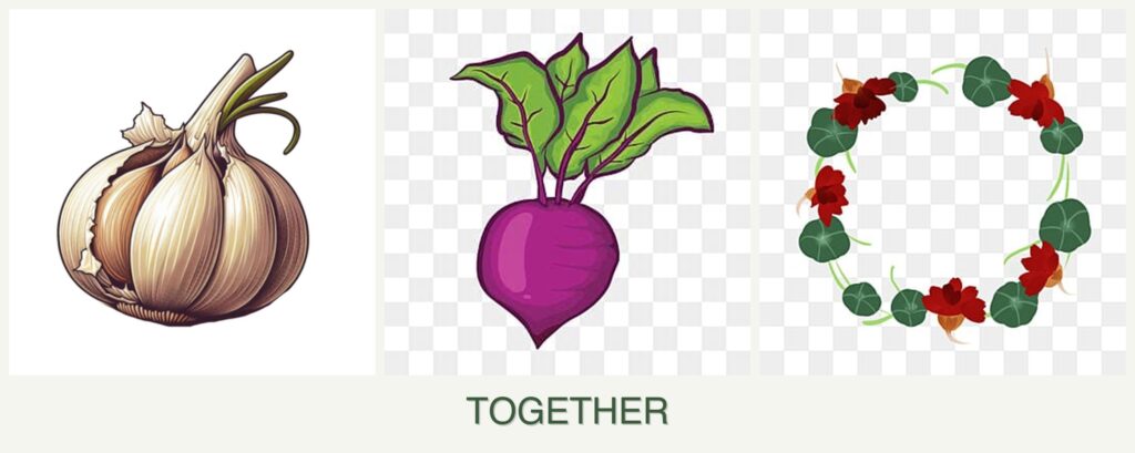 - Pest Control: Garlic acts as a natural deterrent for many pests, and nasturtiums attract aphids away from beets.