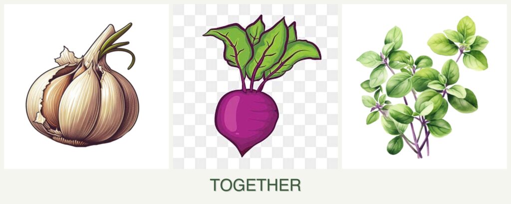 Improved Flavor and Growth: Garlic can enhance the flavor of neighboring plants, while oregano’s aromatic oils may improve beet growth.
