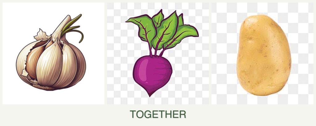 - Pest Repellent Properties: Garlic acts as a natural pest deterrent, keeping aphids and other insects away from beets and potatoes.