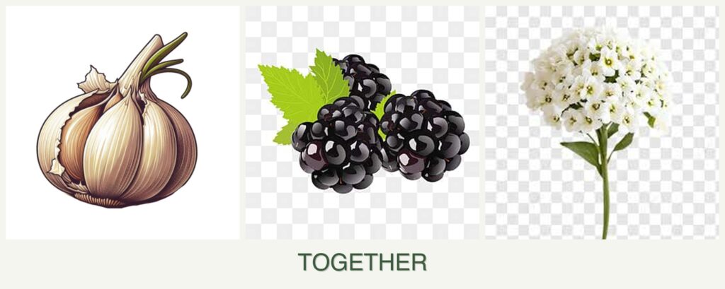 - Pest Control: Garlic acts as a natural pest deterrent, repelling aphids and beetles that might target blackberries. Alyssum attracts beneficial insects like hoverflies, which prey on pests.