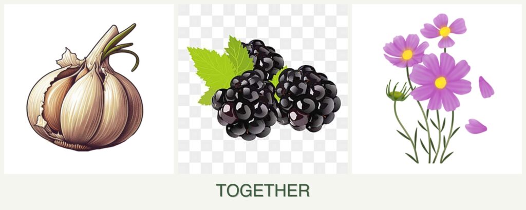 - Pest Control: Garlic acts as a natural pest deterrent, benefiting both blackberries and cosmos.