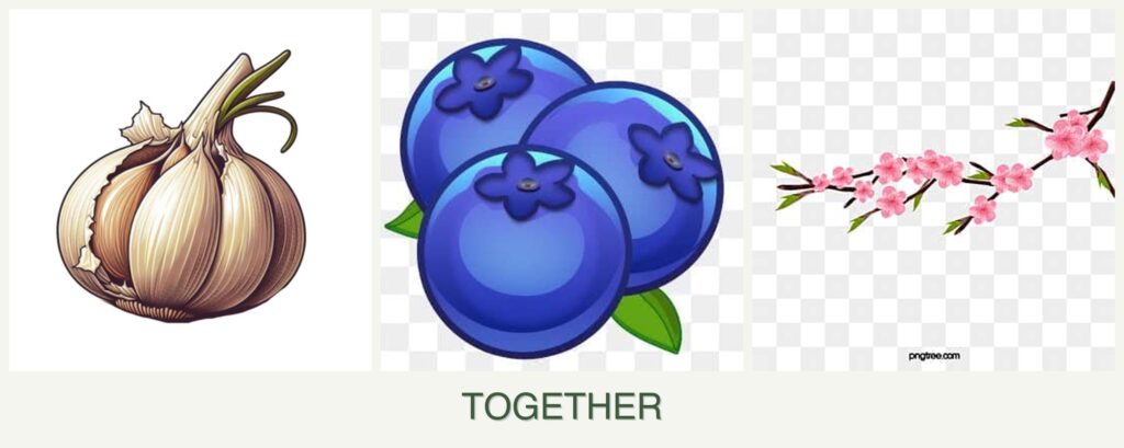 Although garlic, blueberries, and peaches cannot be planted together due to incompatibilities, each plant offers unique benefits when paired with appropriate companions: