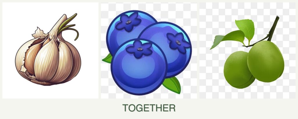 Nutrient Needs and Spacing: Blueberries and plums require more substantial space due to their larger growth habit, while garlic is typically planted more densely. This difference in spacing and nutrient uptake can lead to competition and reduced yields.