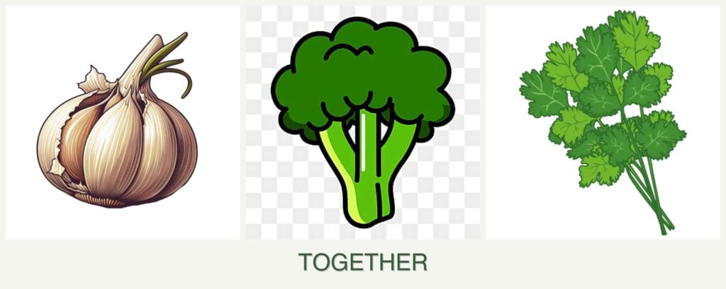 Planting garlic, broccoli, and cilantro together can offer several advantages: