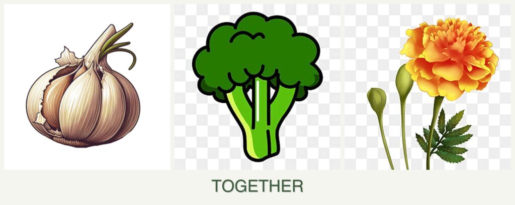 Planting garlic, broccoli, and marigolds together can offer several advantages: