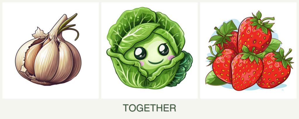 Planting garlic, cabbage, and strawberries together offers several advantages: