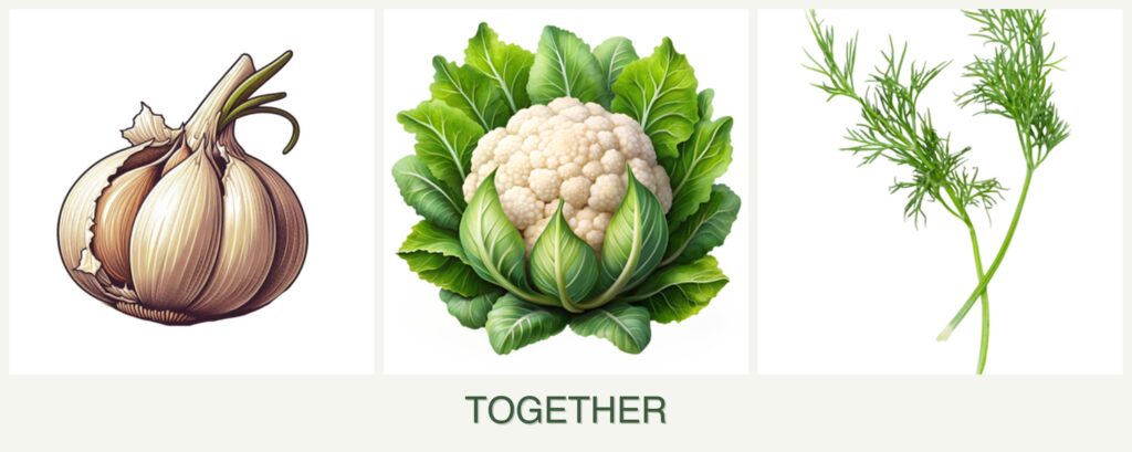 Planting garlic, cauliflower, and dill together offers numerous benefits: