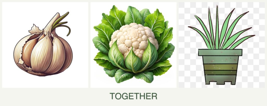 Improved Growth: Garlic’s sulfur compounds can enhance the flavor of nearby vegetables, including cauliflower.