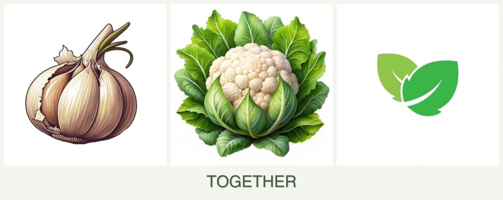 - Pest Repellent Properties: Garlic’s sulfur compounds deter pests, protecting cauliflower from common insects.