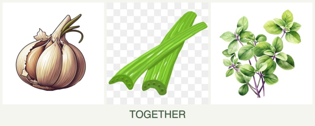- Pest Control: Garlic’s sulfur compounds repel pests, protecting celery and oregano. Oregano attracts beneficial insects that prey on harmful pests.