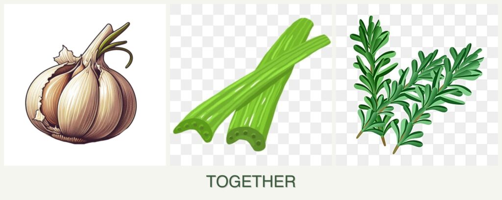- Competition for Resources: Celery’s high water and nutrient needs may compete with garlic and rosemary.