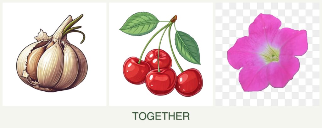 - Pest Control: Garlic is known for its pest-repelling properties, which can benefit cherries and petunias by reducing pest pressure.