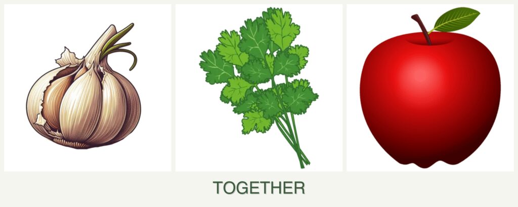 - Improved Flavor or Growth: While there’s no direct evidence that garlic or cilantro improves apple flavor, garlic’s pest control can lead to healthier apple trees.