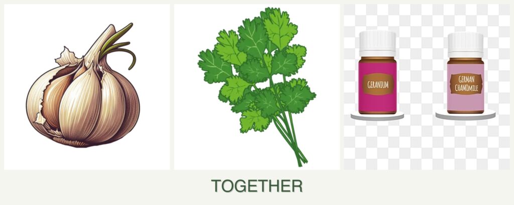 Planting garlic, cilantro, and geraniums together can offer several advantages: