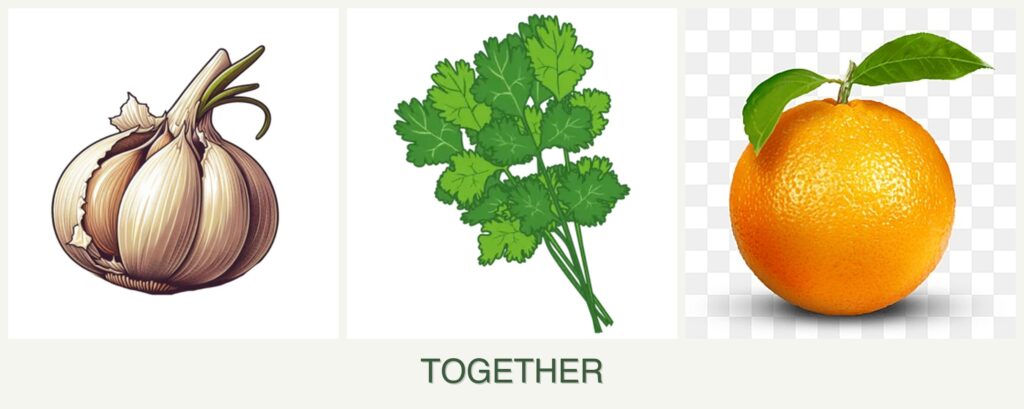 While garlic, cilantro, and oranges are not ideal companions, there are general benefits when plants are well-matched:
