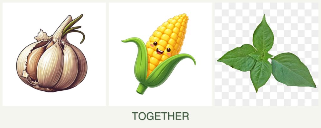Pest Control: Garlic is known for its pest-repelling properties, which can benefit both corn and basil by deterring insects like aphids and beetles.